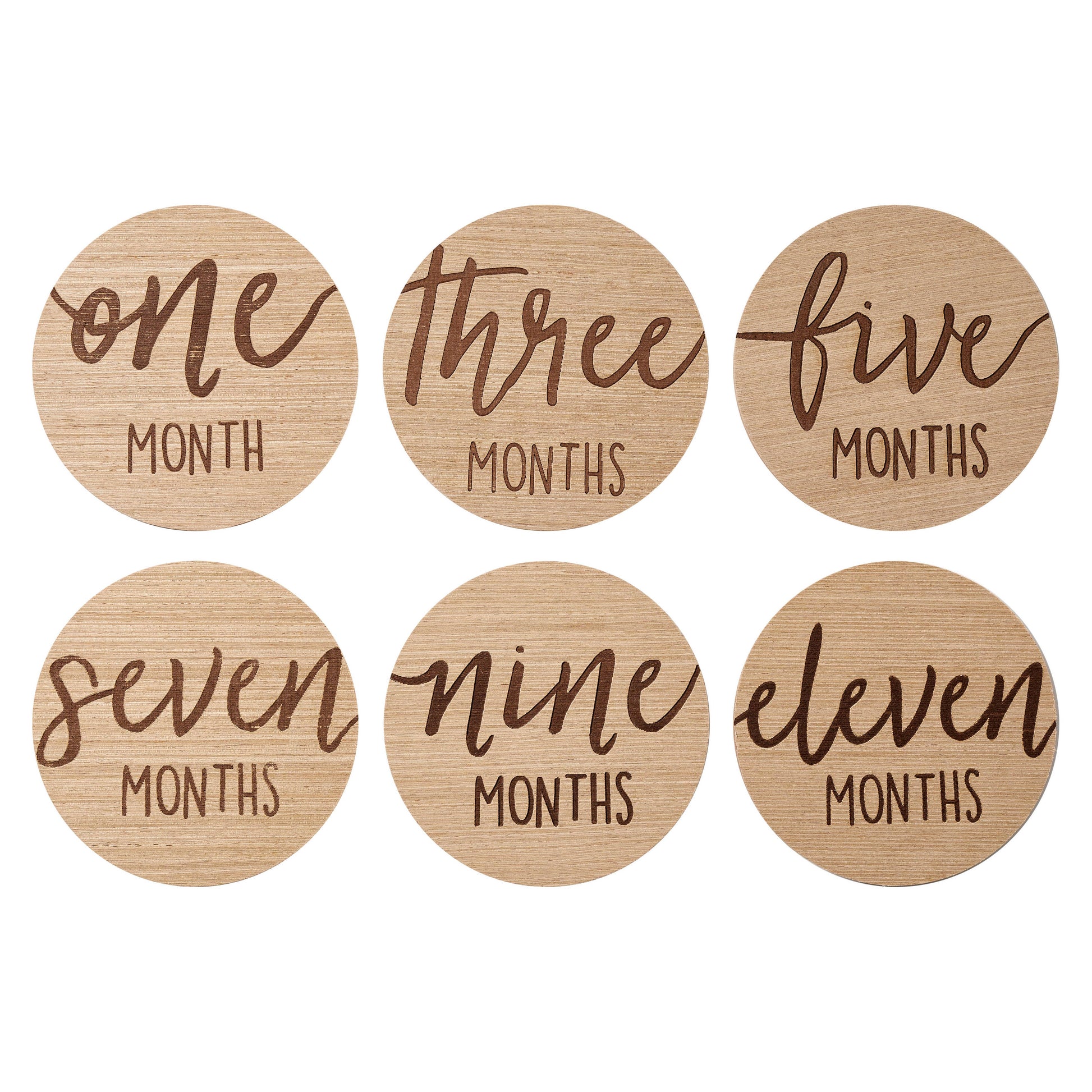 · Includes six double-sided circular wooden photo props for capturing baby’s first year and monthly milestone