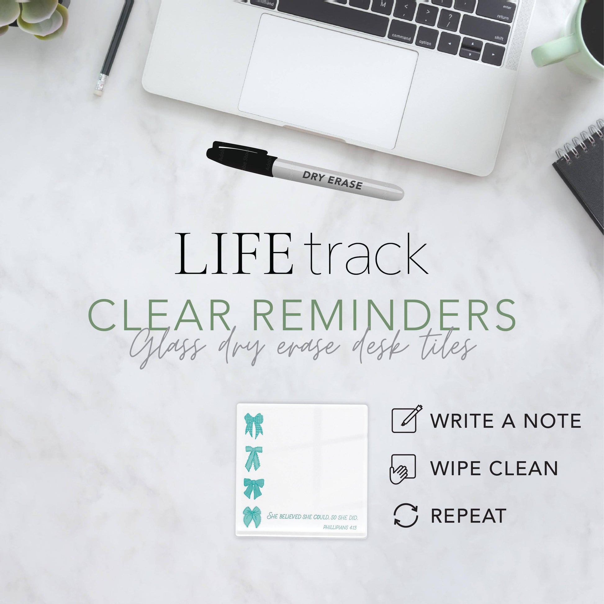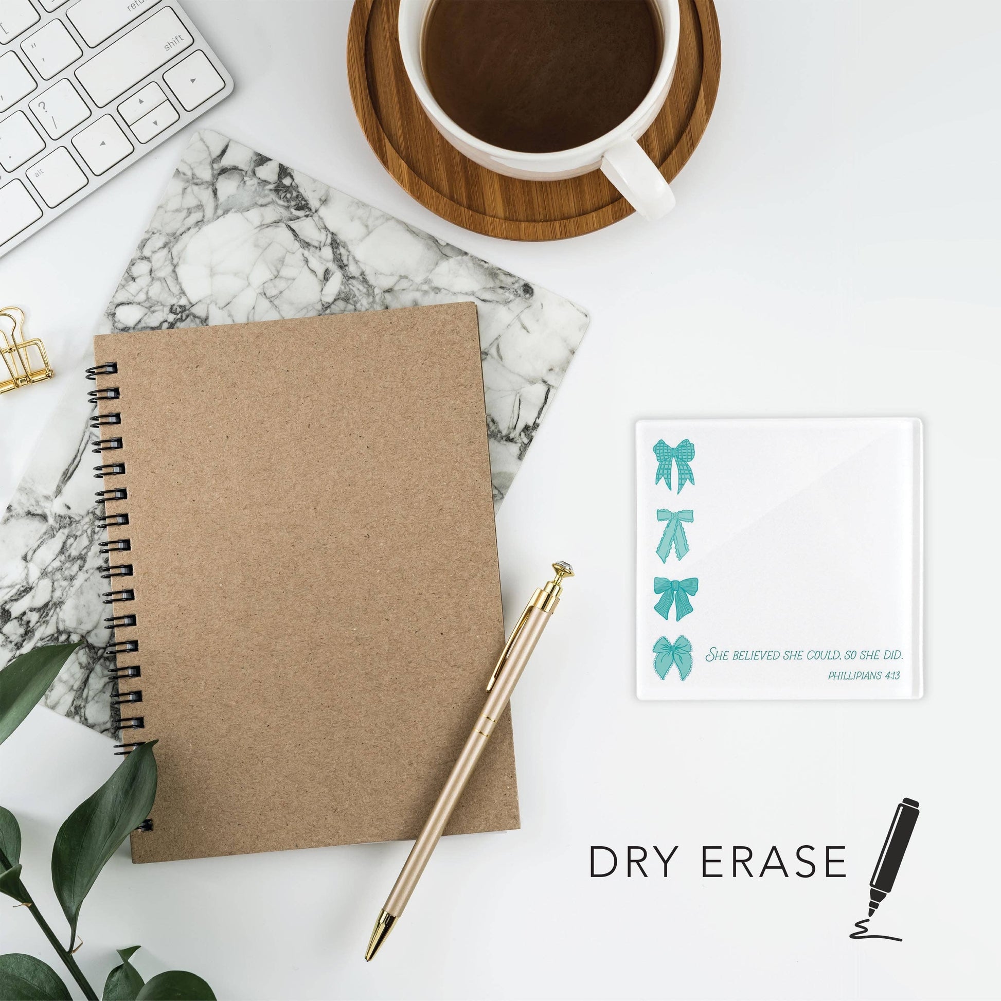 Make a note, draw a doodle, or leave a reminder on our 4” glass dry erase, packed with personality, Clear Reminders.